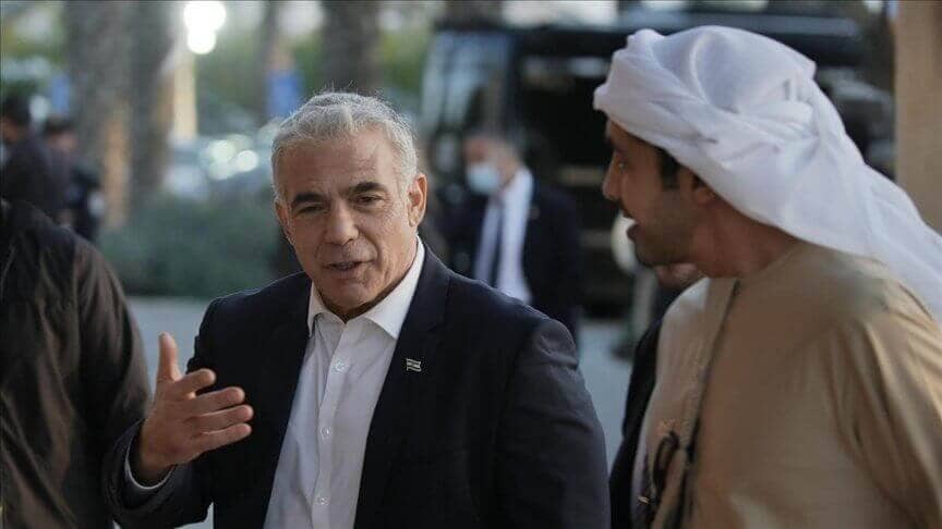 Abdullah bin Zayed Al Nahyan thanked Lapid for “the warm welcome on his first official visit to Israel,” stressing that the relations between the two countries “are witnessing continuous growth and development.”
