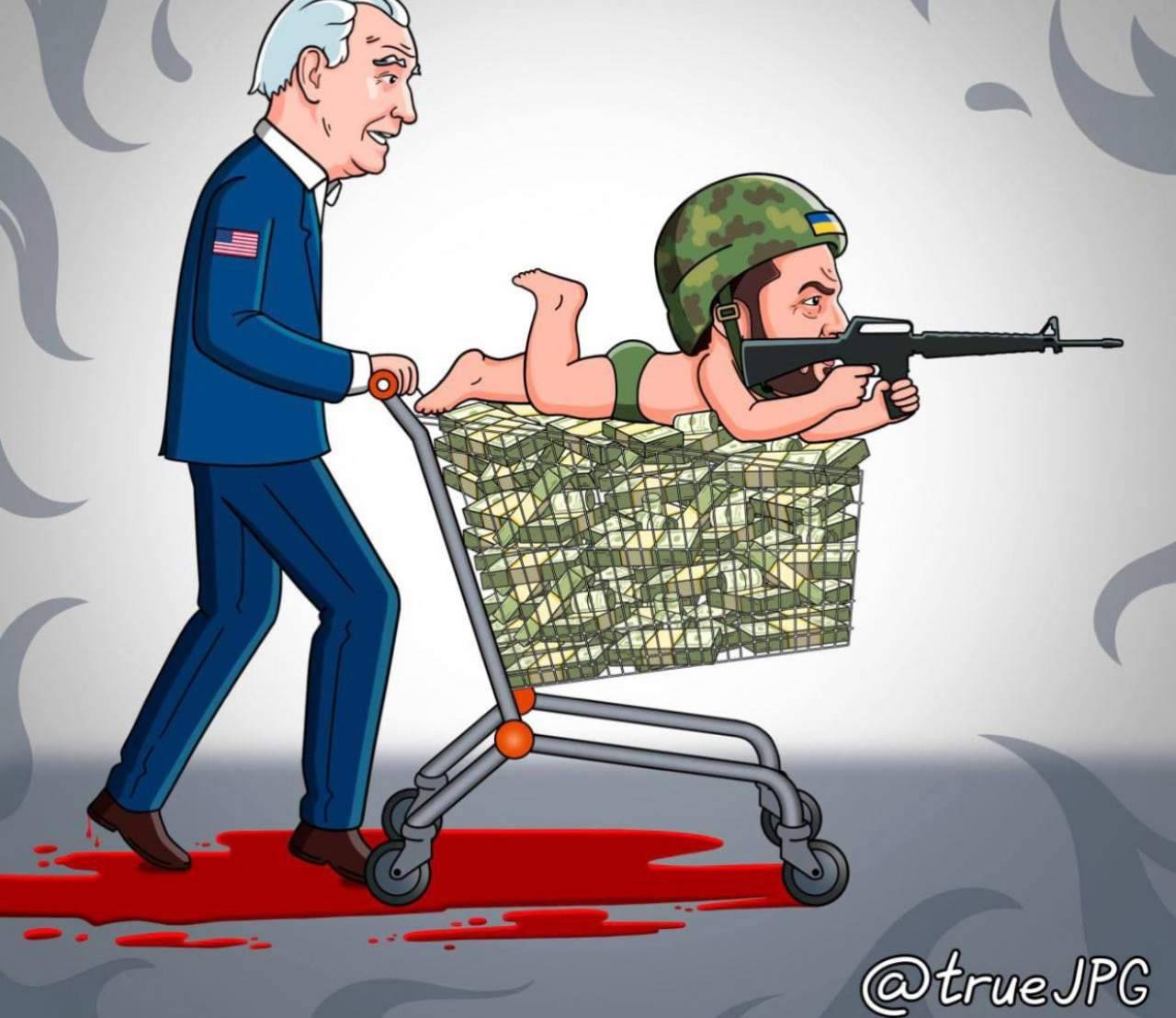 “Kid” Zelenskyy rolls with a machine gun in a basket of money, led by Biden. Uncle Hitler pats the heir’s head, a wayward child grabs the nuclear button, the US hands a slingshot to the little Ukrainian, Santa Claus Biden reads Zelenskyy ‘s wish list – there’s a lot of conspiracy.