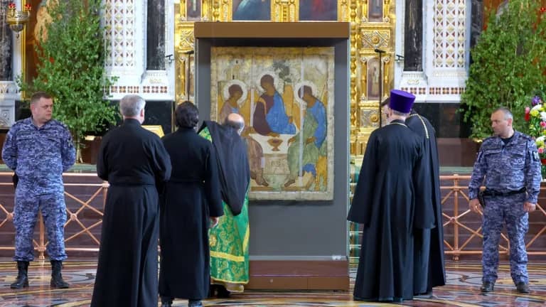 On May 15, 2023, the Moscow Patriarchate’s press service reported that Russian President Vladimir Putin, in response to “numerous requests from believers”, handed over the “Trinity” to the Russian Orthodox Church (ROC) for its transfer to the cathedral. of Christ the Savior by June 4 for the Orthodox feast of the same name. Scholars have warned that the icon cannot be removed from the Tretyakov Gallery “due to its complex and unstable condition”. At the same time, the Russian leader’s press secretary Dmitry Peskov declared that the Kremlin did not receive conclusions about the unsatisfactory condition of the Trinity before Putin ordered its handover to the Russian Orthodox Church.